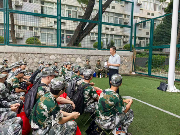 上午10点,同学们队列整齐、精神抖擞,集中在学校田径场。学院教学副院长景蔚萱代表学院对精心筹备军训工作的教官及指导员表示感谢、对刻苦训练的同学们予以亲切问候。他鼓励同学们发扬艰苦奋斗,不怕苦、不怕累的精神,磨练坚强意志,培养良好的纪律观念和集体荣誉感。