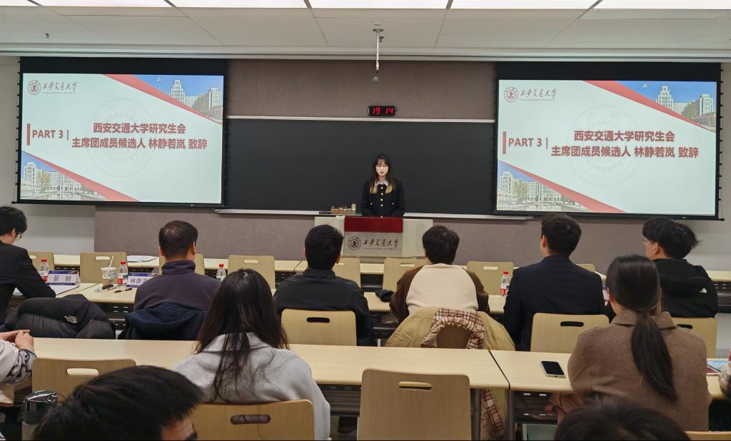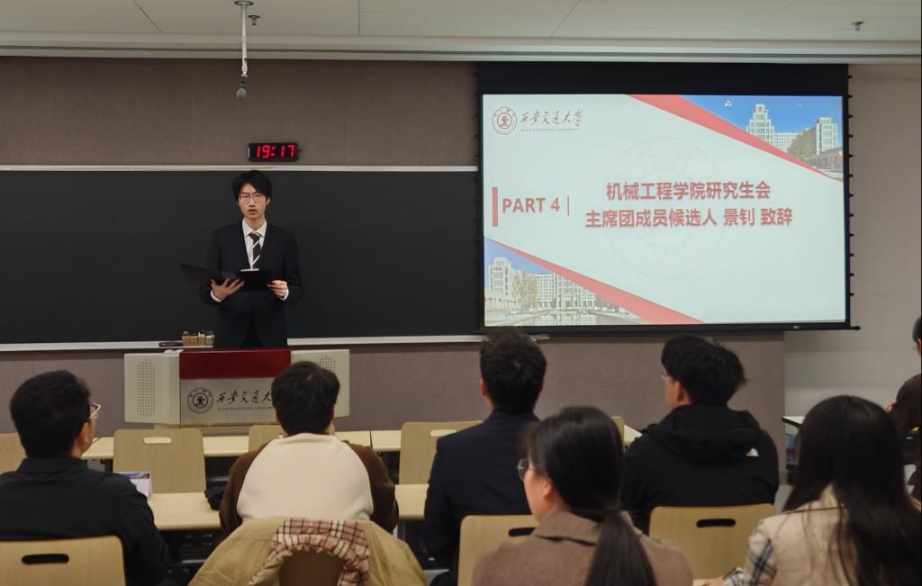 出席大会的嘉宾还有:能源与动力工程学院团委学生兼职副书记康博士、机械工程学院研究生会主席团成员景钊、电气工程学院研究生会主席团成员韩昊奇。
