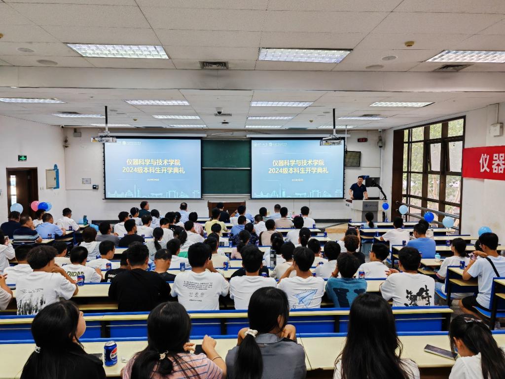 景蔚萱副院长作为教师代表发言,建议同学们做到“理论联系实际”,坚持创新,同时注意自我调节,努力学习、健康生活。梁霖系主任以“交叉融合,测控使命”为主题,对测控专业培养目标、课程体系设置进行详细解读。