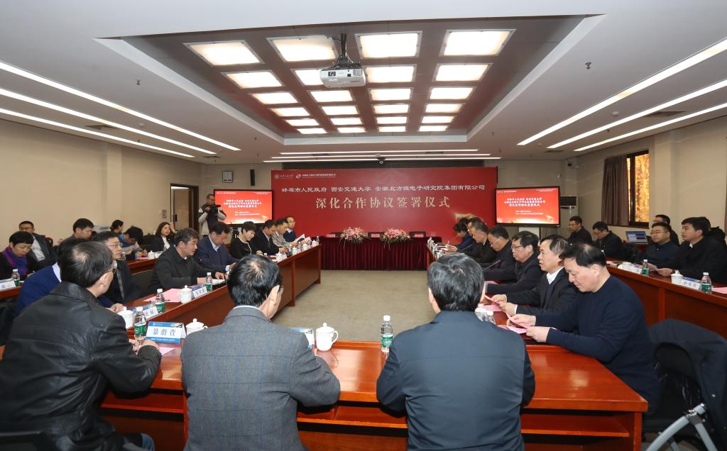 马军指出,蚌埠市将面向中国传感谷产业集群基础及技术创新需要,依托蚌埠市的自然资源、产业基础、发展环境,大力支持协同中心创新发展。希望此次合作能深化科技与经济的融合,助力西安交大实现产教深度融合,打造科创人员聚集地、传感产业高地。