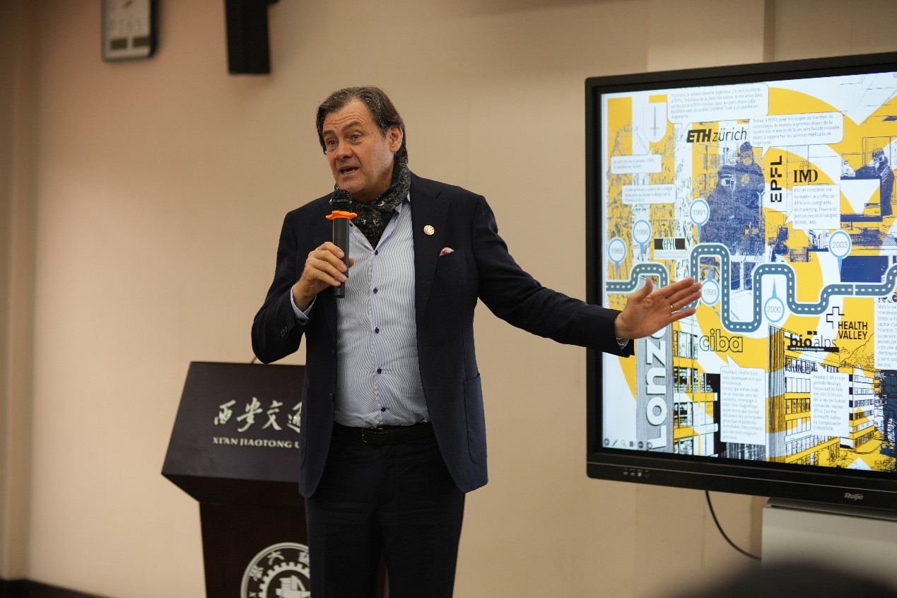 贝努瓦·杜比表示,这是他首次到访西安,西安交大厚重的历史底蕴与蓬勃的创新活力具有独特的魅力。他提到,在数字化、智能化浪潮席卷全球的今天,生物医学工程正迎来前所未有的发展机遇,西安交大在精密仪器、生物传感等领域的深厚积累,与瑞士在高端医疗器械方面的技术优势高度互补,期待与西安交大师生携手开展联合研究,共同推动科技与产业的深度融合。